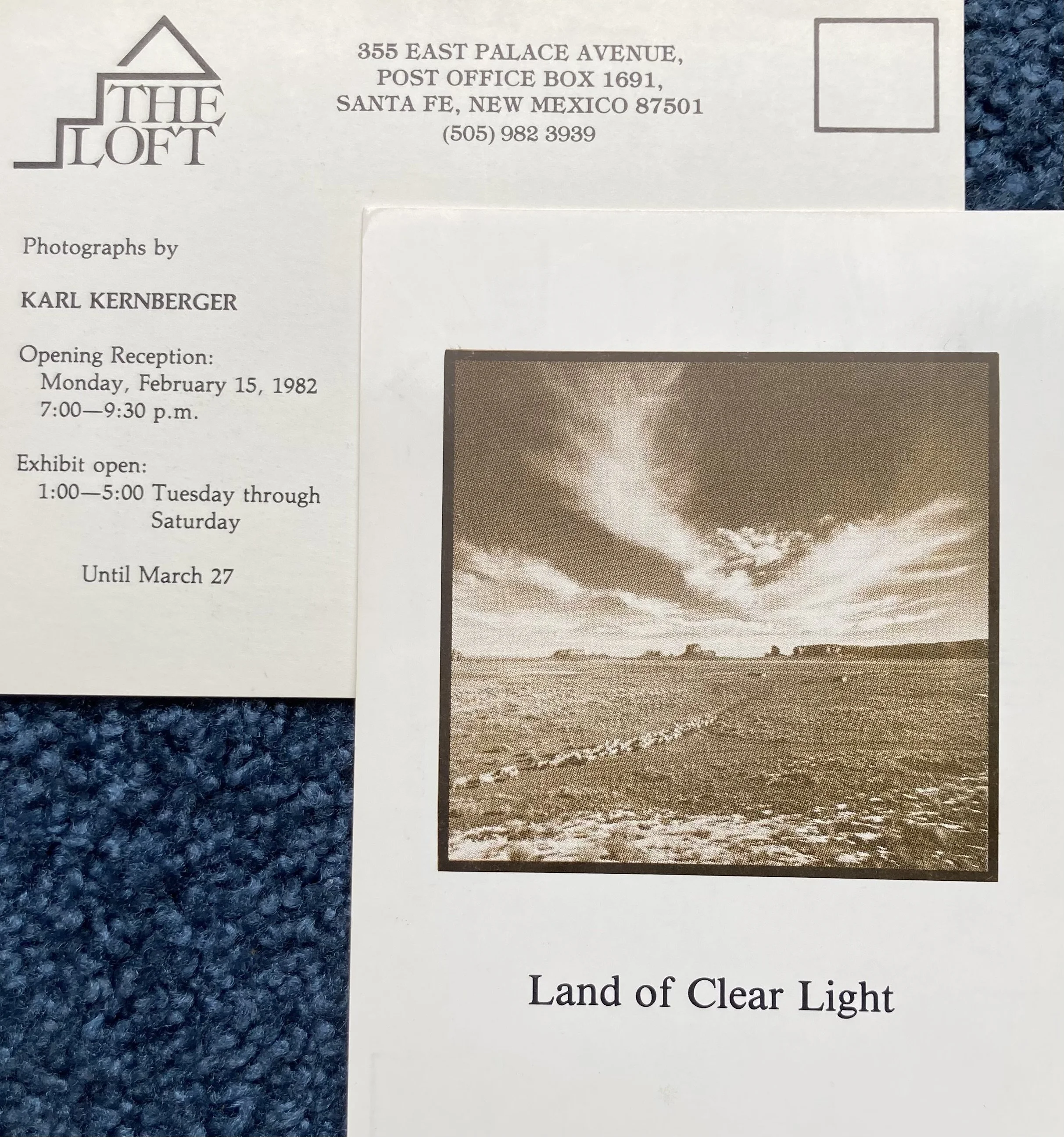 1982 The Loft Gallery, Santa Fe, NM “Land of Clear Light”, solo show of photographic prints